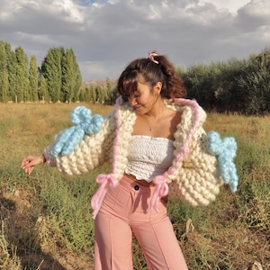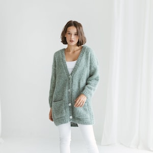 Hand knitted long Cashmere wool cardigan, Women merino open front sweater, Knitted long jacket, Oversized women cardigan RIVIERA