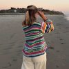 Merino and Alpaca Furry Sweater. Hand-Knitted Colorful striped sweater.